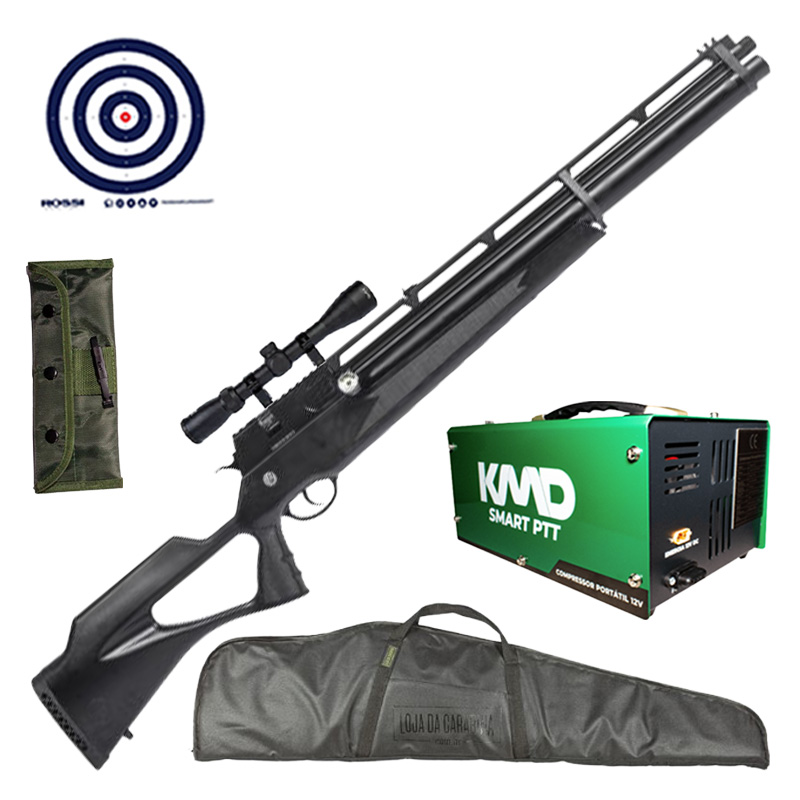 Carabina PCP Rossi R8 Black VR 5.5mm + Compressor de AR + Luneta 3-9x40 + Capa + Kit Limpeza + Alvos