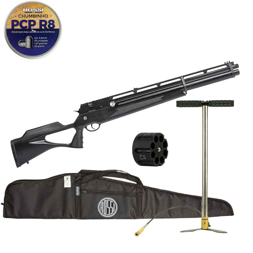 Carabina PCP Rossi R8 Black VR 5.5mm + Magazine PCP R8 + Chumbinho R8 + Capa + Bomba Manual