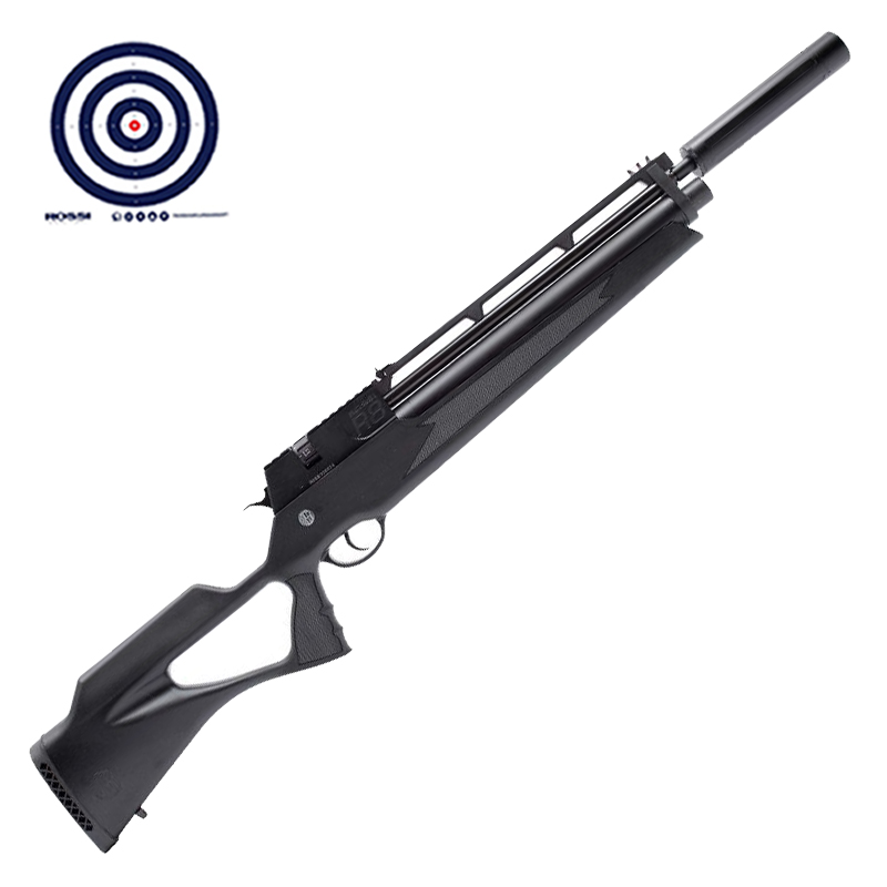 CARABINA R8 SHORT BLACK PCP ROSSI PRETA 5.5 MM + SUPRESSOR R8 + ALVOS