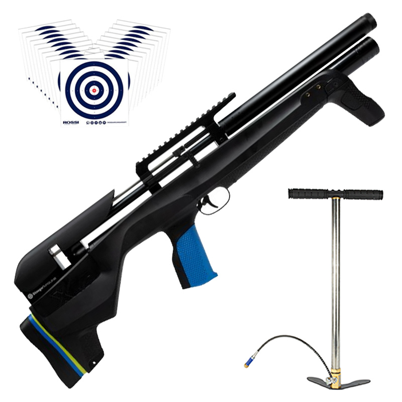 Combo imperdível feito pela LC contendo Bomba Manual PCP 300 BAR para preencher o cilindro da sua PCP e Alvos de Treino Rossi.