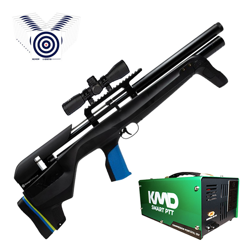 Carabina PCP Stoeger XM1 Bullpup 4.5mm + Compressor de AR KMD + Luneta 4x32 + Alvos