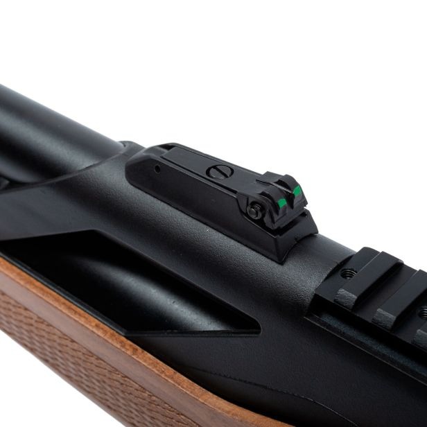 A T-Rex Wood possui alça e massa de mira com ajuste, ideais para tiros em curtas e médias distâncias, além de trilho de 22 mm, compatível com lunetas e red dots. O ferrolho lateral ambidestro permite ajuste para destros e canhotos, enquanto o gatilho ajustável, o magazine rotativo para 10 chumbinhos calibre 5.5mm (.22) e o adaptador monotiro completam um conjunto extremamente versátil e preciso.