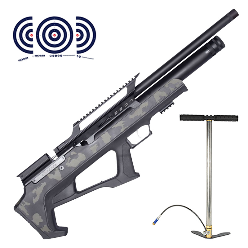 Carabina PCP Zeon Effecto Bullpup Camuflado Verde 5.5mm + Bomba Manual PCP + Alvos