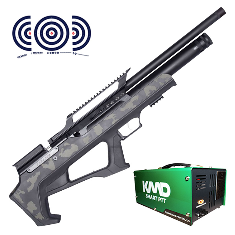 Carabina PCP Zeon Effecto Bullpup Camuflado Verde 5.5mm + Compressor de AR KMD + Alvos