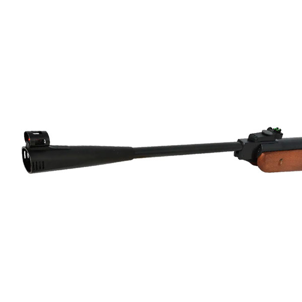 Esta carabina possui sistema de ação por mola, gatilho de dois estágios com regulagem de peso.