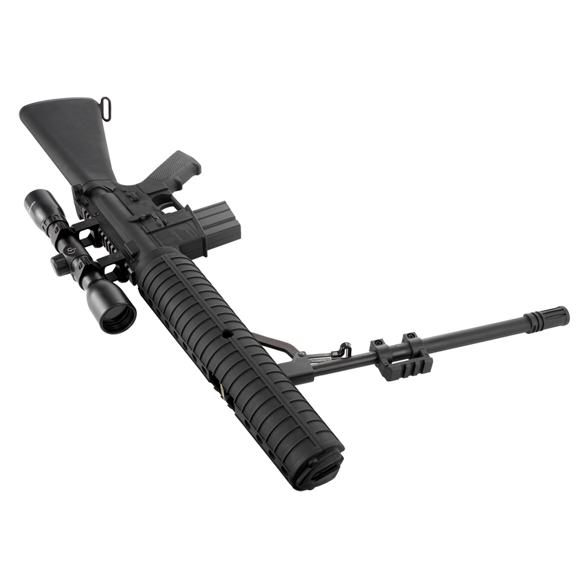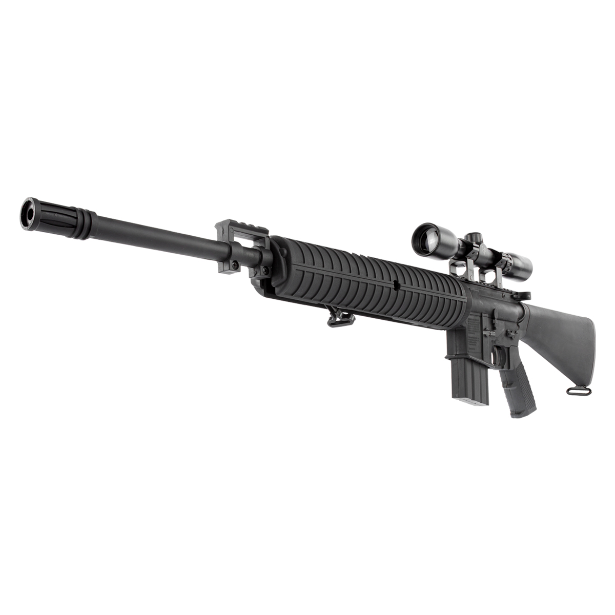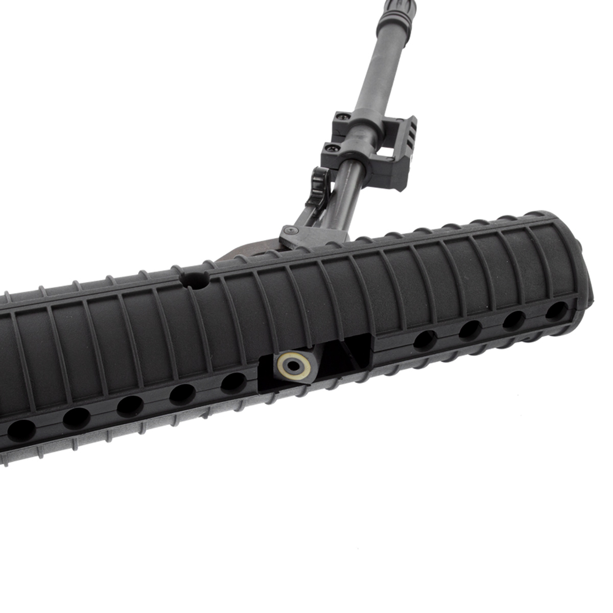 Fabricado em um polímero de alta qualidade, esta carabina oferece um design e conforto único, ao atirador. Ela ainda conta com Handguard anti-derrapante e um flash rider aumentando seu realismo.