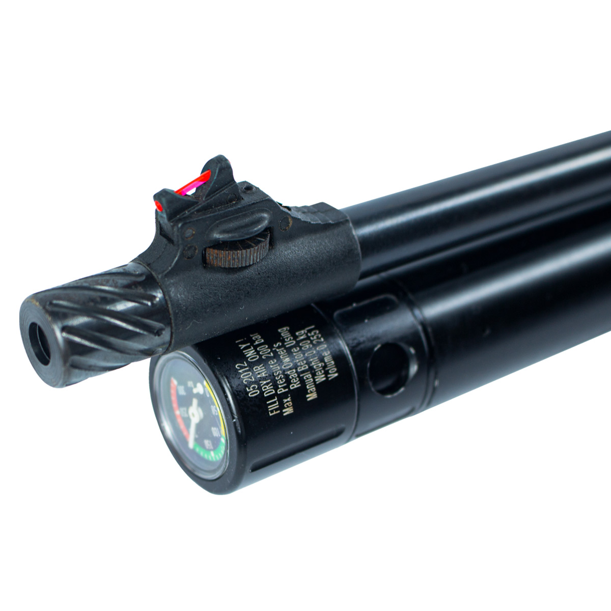 Cilindro de ar removível que permite a troca por outro reserva, com volume de 255 cc e capacidade de 200 BAR de pressãoManômetro integrado no cilindro de ar para controle de pressão