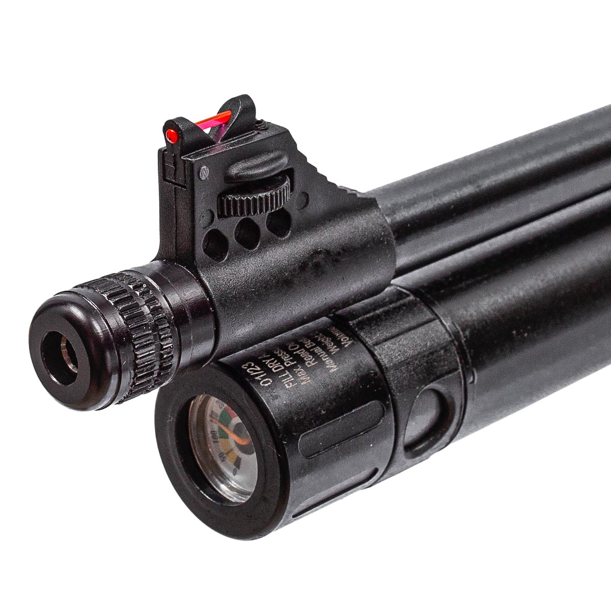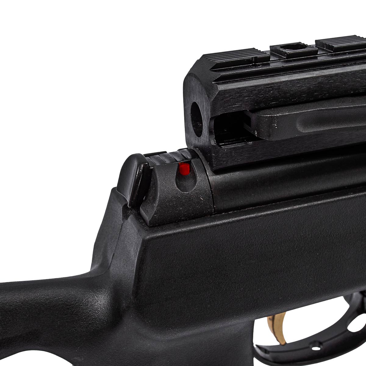 A AT-44 Hatsan possui alça com ajuste de altura e lateralidade e a massa de mira ajuste de altura e fibra óptica