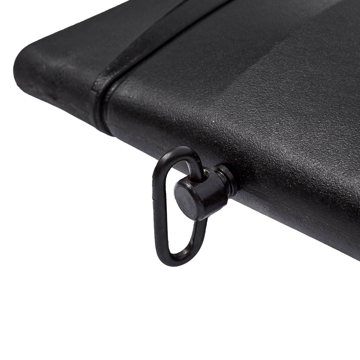 Possui engates para uso de bandoleira, facilitando o transporte e empunhadura da PCP Hatsan AT44-10.