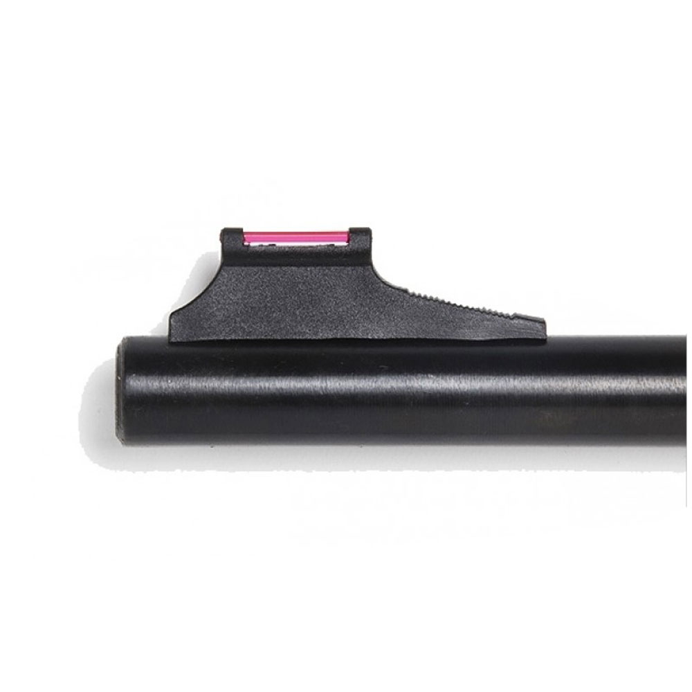 A alça de mira é deslizante, com regulagem micrométrica, lateral e vertical. A massa de mira é fixa. Ambas agora são em fibra óptica.