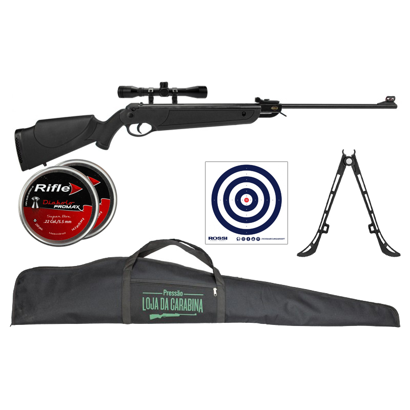 DIONE 4G ROSSI CARABINA DE PRESSÃO 5.5 + LUNETA 4X32 + CHUMBINHO + BIPÉ + CAPA + ALVOS