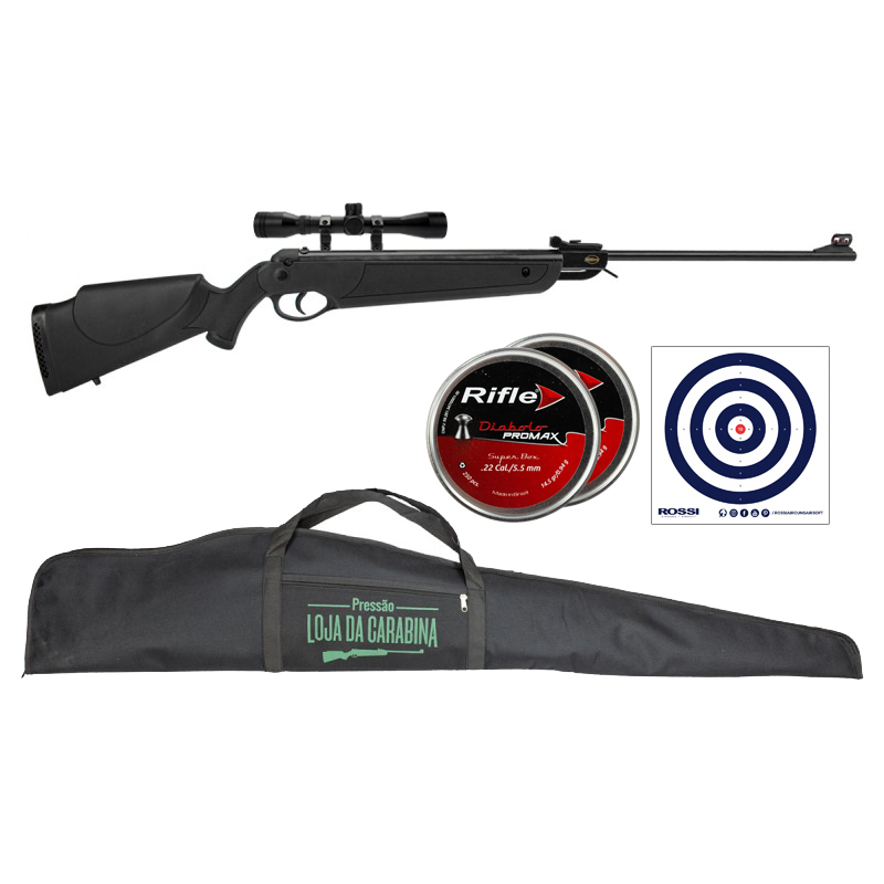 DIONE 4G ROSSI CARABINA DE PRESSÃO 5.5 + LUNETA 4X32 + CHUMBINHO + CAPA + ALVOS