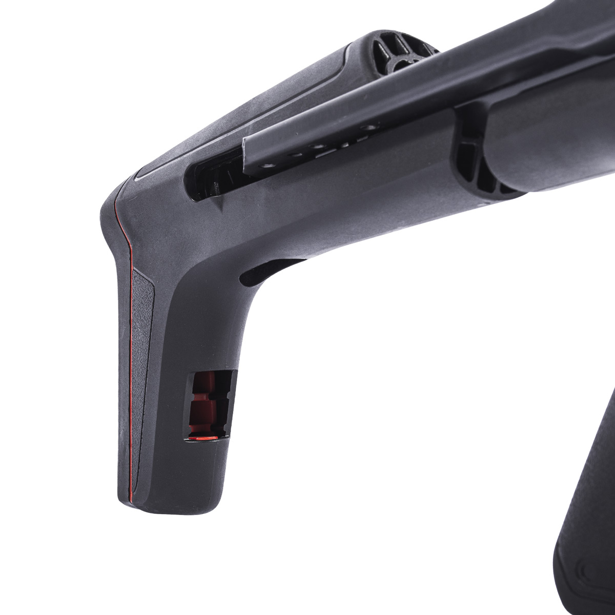 Fabricada com uma coronha em polímero de alta densidade na cor preta, possui detalhes em vermelho que destaca entregando um visual muito bonito para essa Carabina Gás Ram.