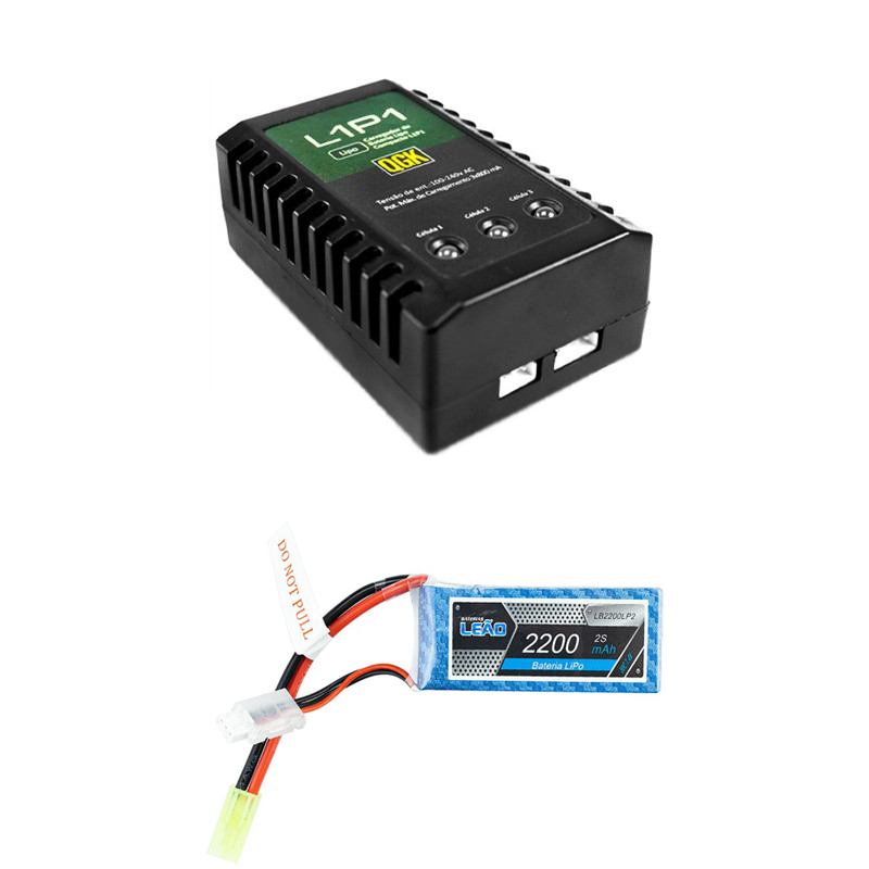 Carregador Compacto Li-Po L1P1 QGK + BATERIA 7.4V PARA RIFLE AEG