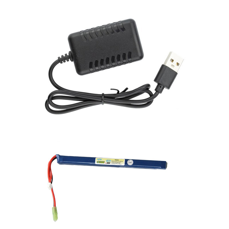 CARREGADOR COMPACTO PARA BATERIA LIPO 7.4V L2-USB + BATERIA LIFEPO 11.1V STICK