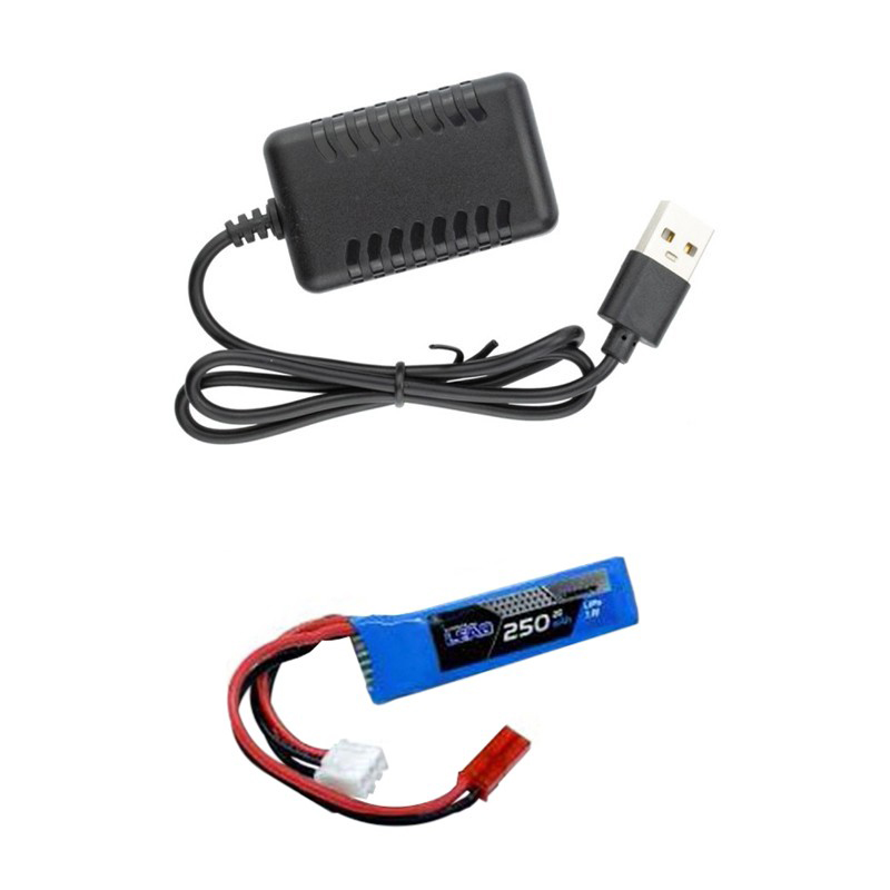 CARREGADOR COMPACTO PARA BATERIA LIPO 7.4V L2-USB + BATERIA LIPO 7.4V AEP