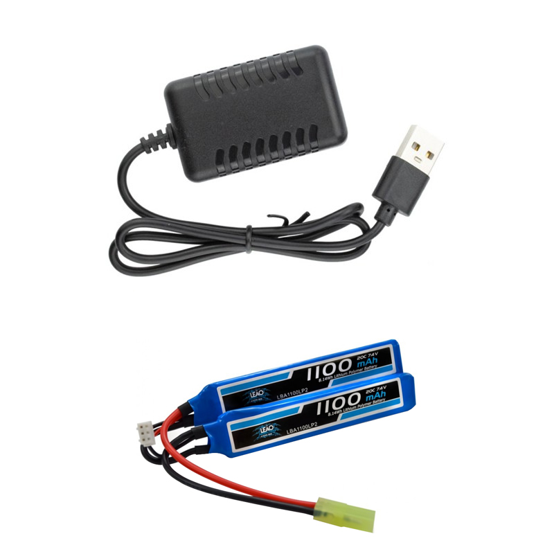 CARREGADOR COMPACTO PARA BATERIA LIPO 7.4V L2-USB + BATERIA LIPO 7.4V 2S
