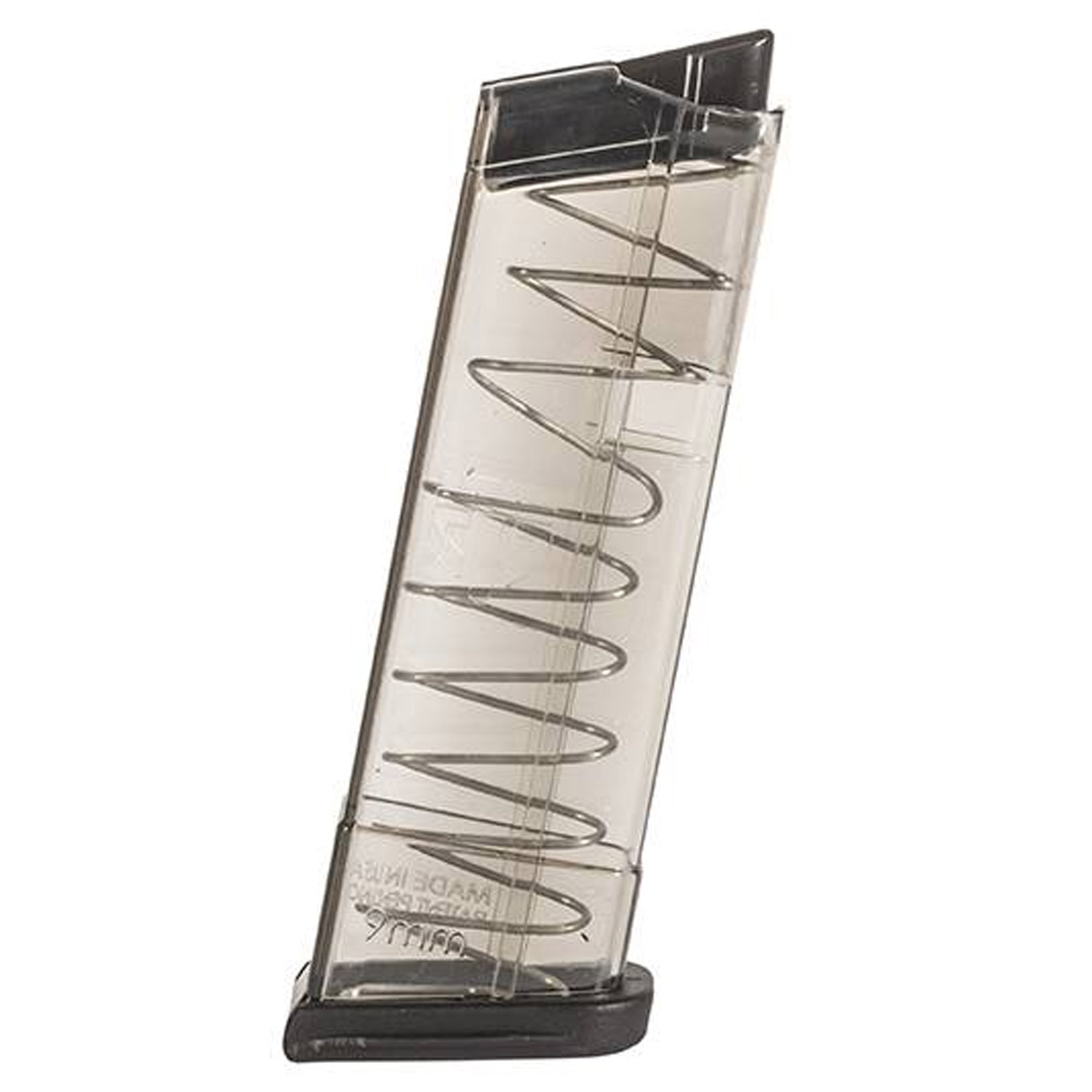 Esse carregador suporta altas temperaturas e é resistente a substâncias químicas. Seu corpo transparente permite fácil visualização e contagem das munições no interior do carregador.