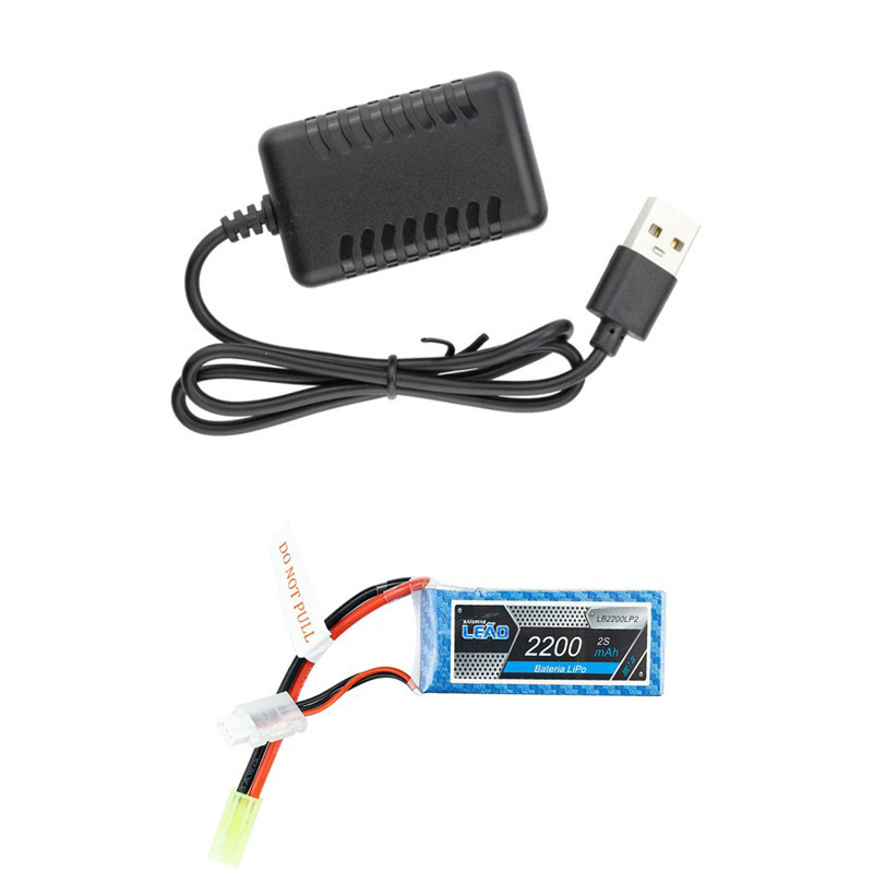CARREGADOR COMPACTO PARA BATERIA LIPO 7.4V L2-USB + BATERIA 7.4V PARA RIFLE AEG