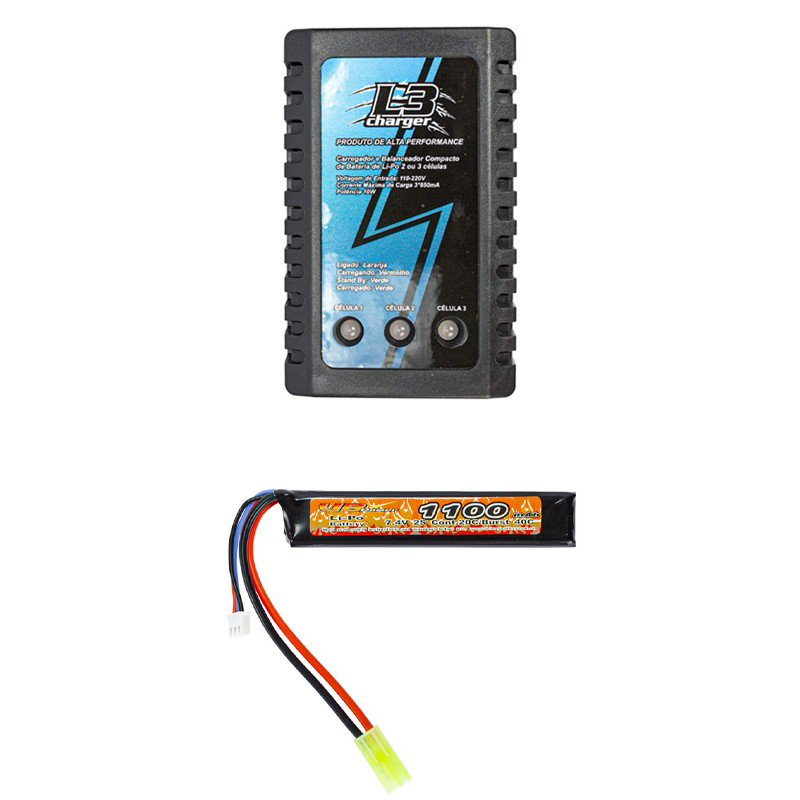 Carregador LIPO L3 2S/3S + BATERIA PARA AEG 7.4V 1100 MAH