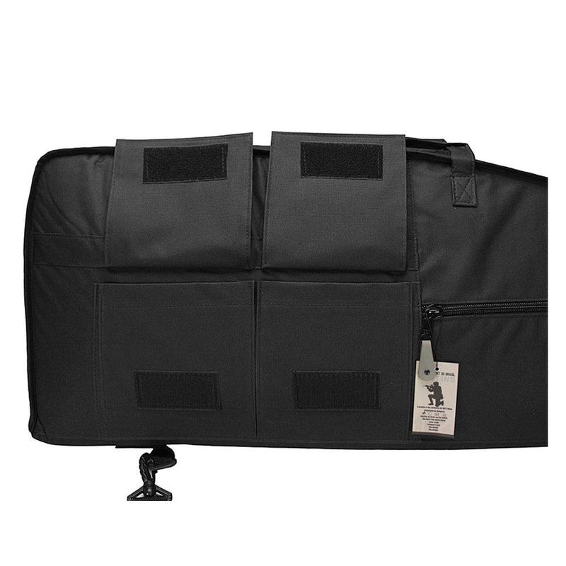 Internamente, duas fitas de velcro ajustáveis asseguram que sua carabina permaneça completamente fixa, eliminando movimentos indesejados que poderiam causar avarias durante o transporte.
