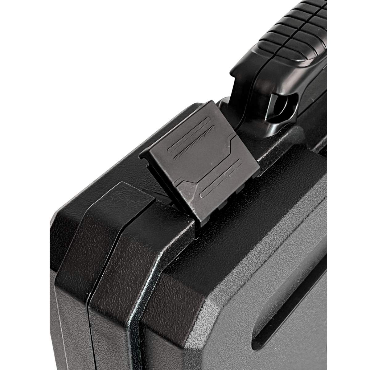 Outro grande diferencial é sua vedação padrão IP65, que oferece proteção contra poeira e respingos de água, garantindo maior segurança mesmo em ambientes adversos. A maleta também possui duas travas reforçadas, que mantêm o case firmemente fechado, além de orifícios para cadeado, permitindo o uso de travamento adicional para maior segurança.