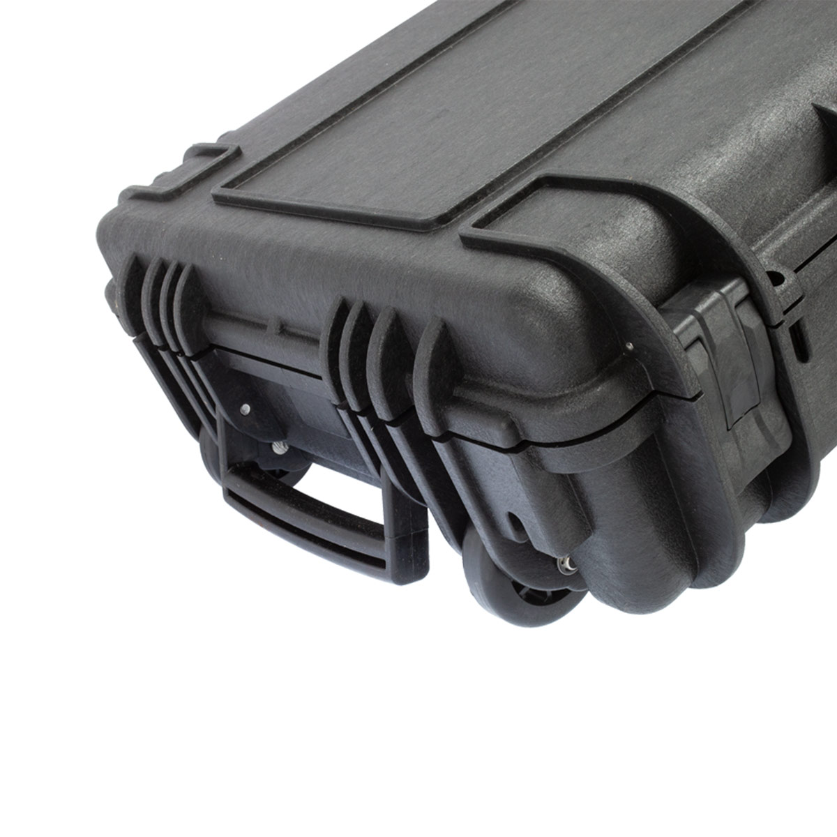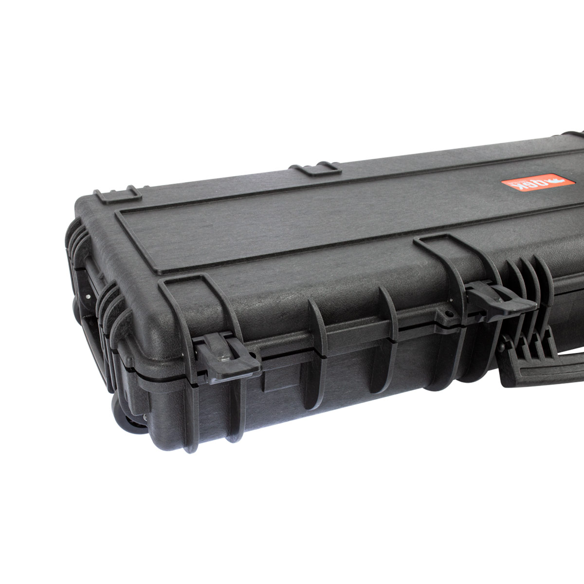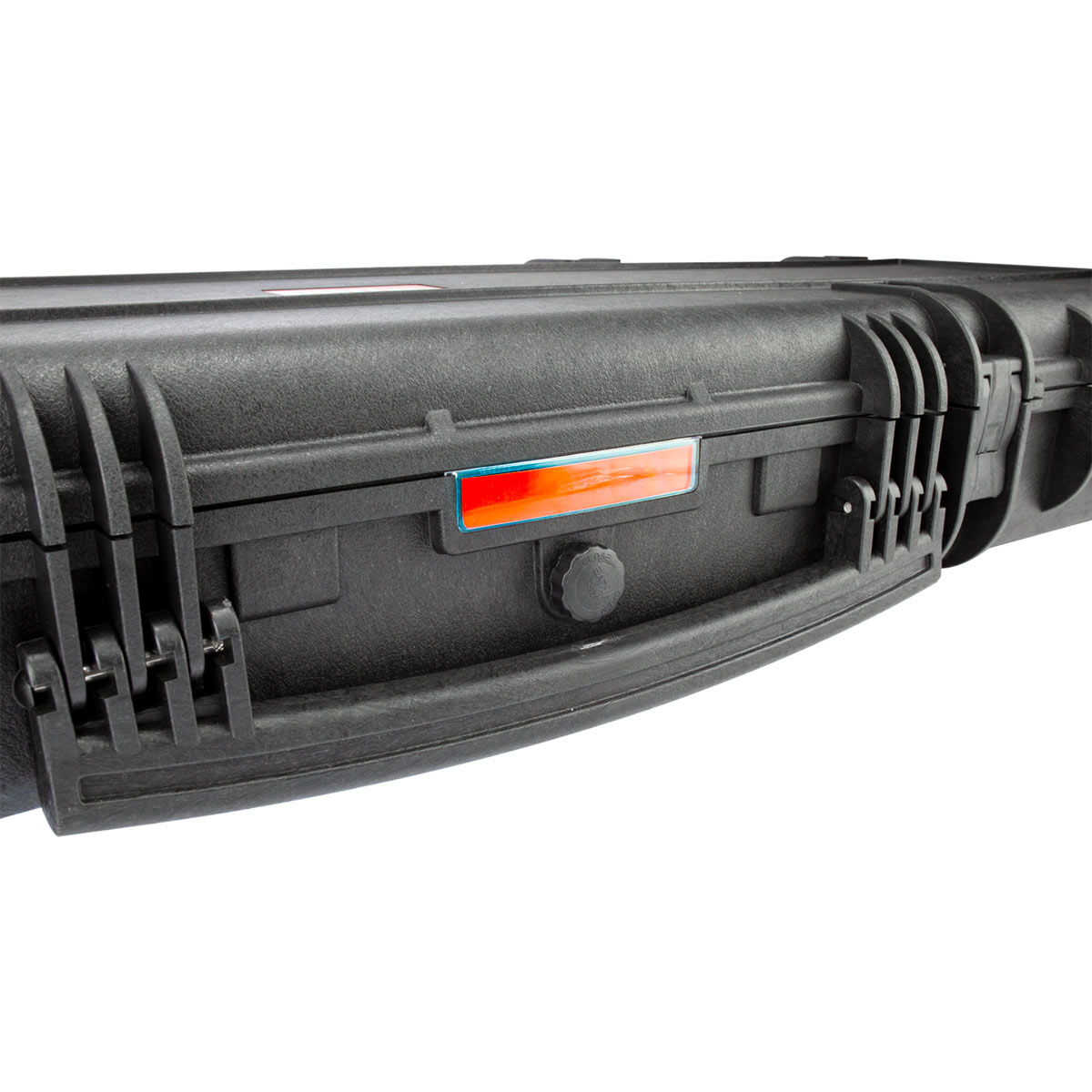 Possui borracha de vedação em toda a borda da case impedindo a entrada de água ou poeira vinda de qualquer direção. É uma Case Rígida para Arma Longa com Grau de Proteção IP67 (á prova d'água).