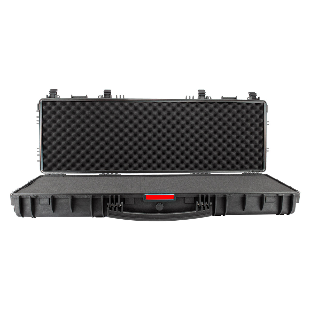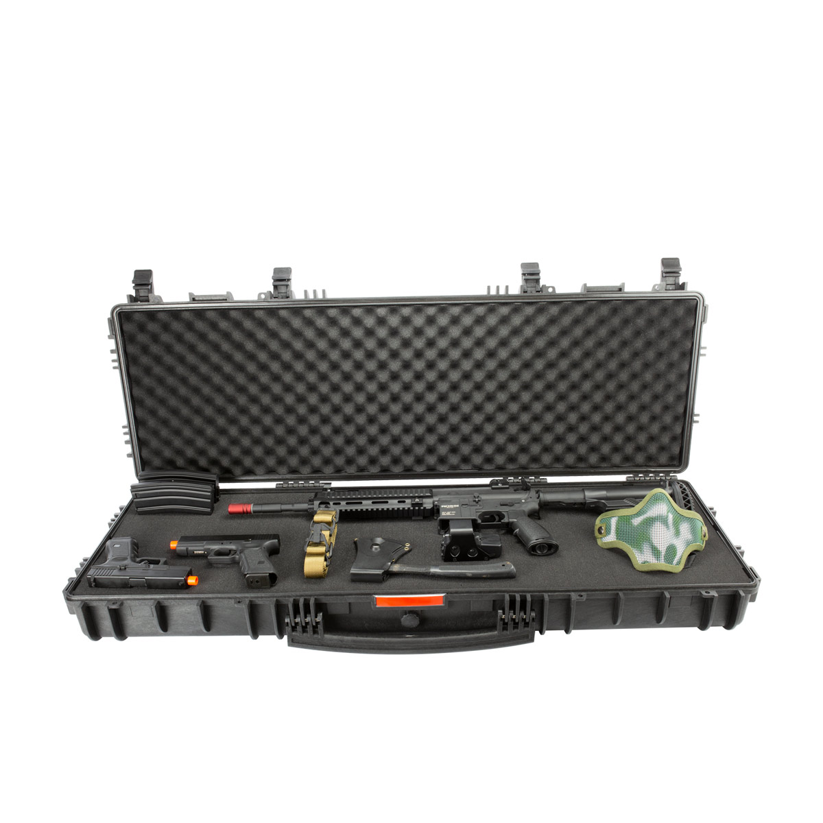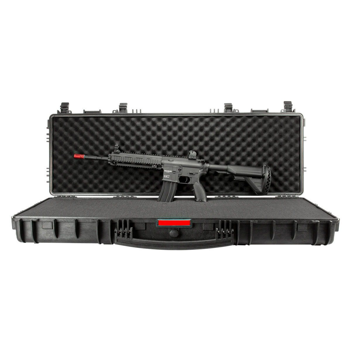 Possui borracha de vedação em toda a borda da case impedindo a entrada de água ou poeira vinda de qualquer direção. É uma Case Rígida para Arma Longa com Grau de Proteção IP67 (á prova d'água).