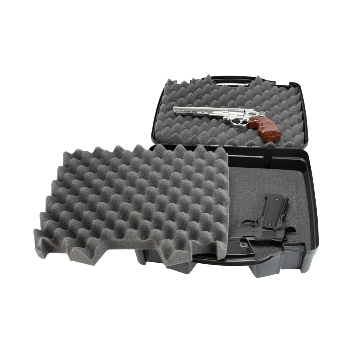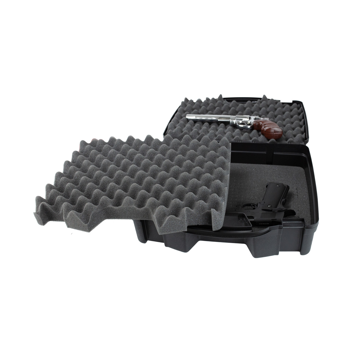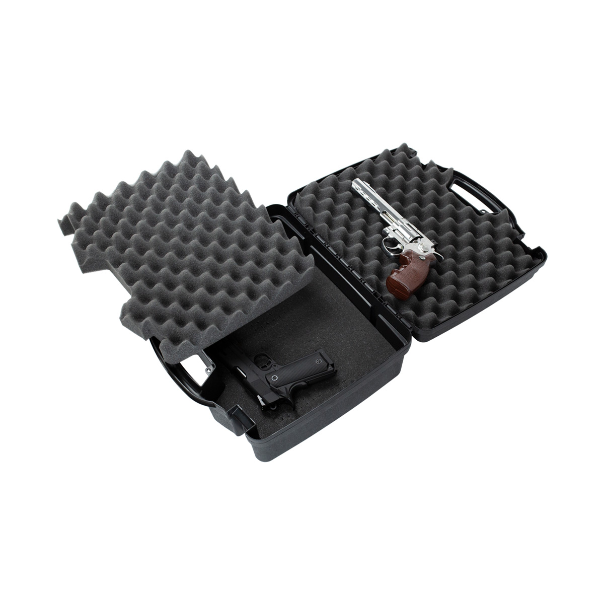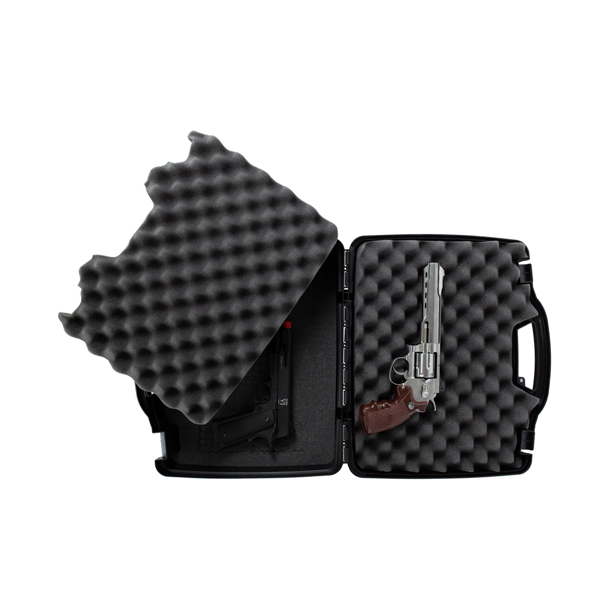 Case rígido Plano na cor preta, que comporta até 4 pistolas de forma prática e segura.