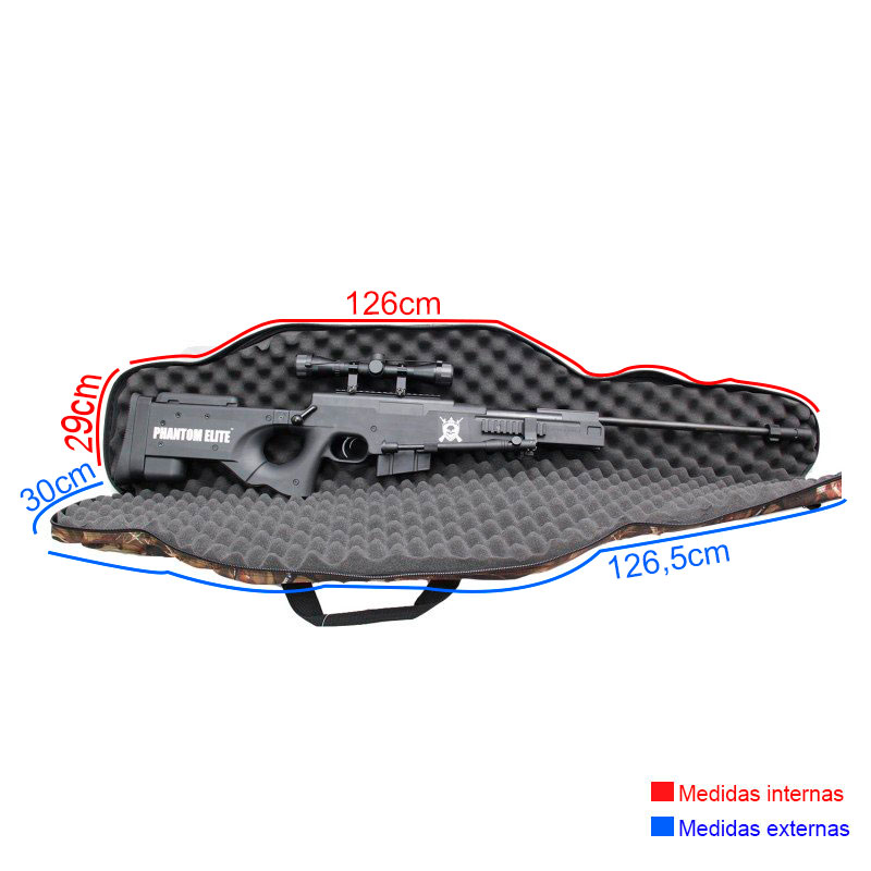 Seu formato e dimensões permite transporte de carabinas com luneta acoplada