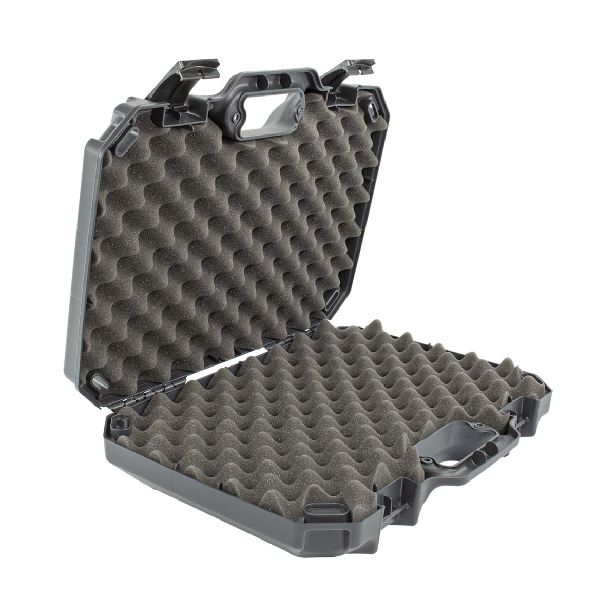 Essa maleta possui revestimento interno em espumas, formato caixa de ovo e comporta até duas Pistolas com seu amplo espaço de armazenamento.