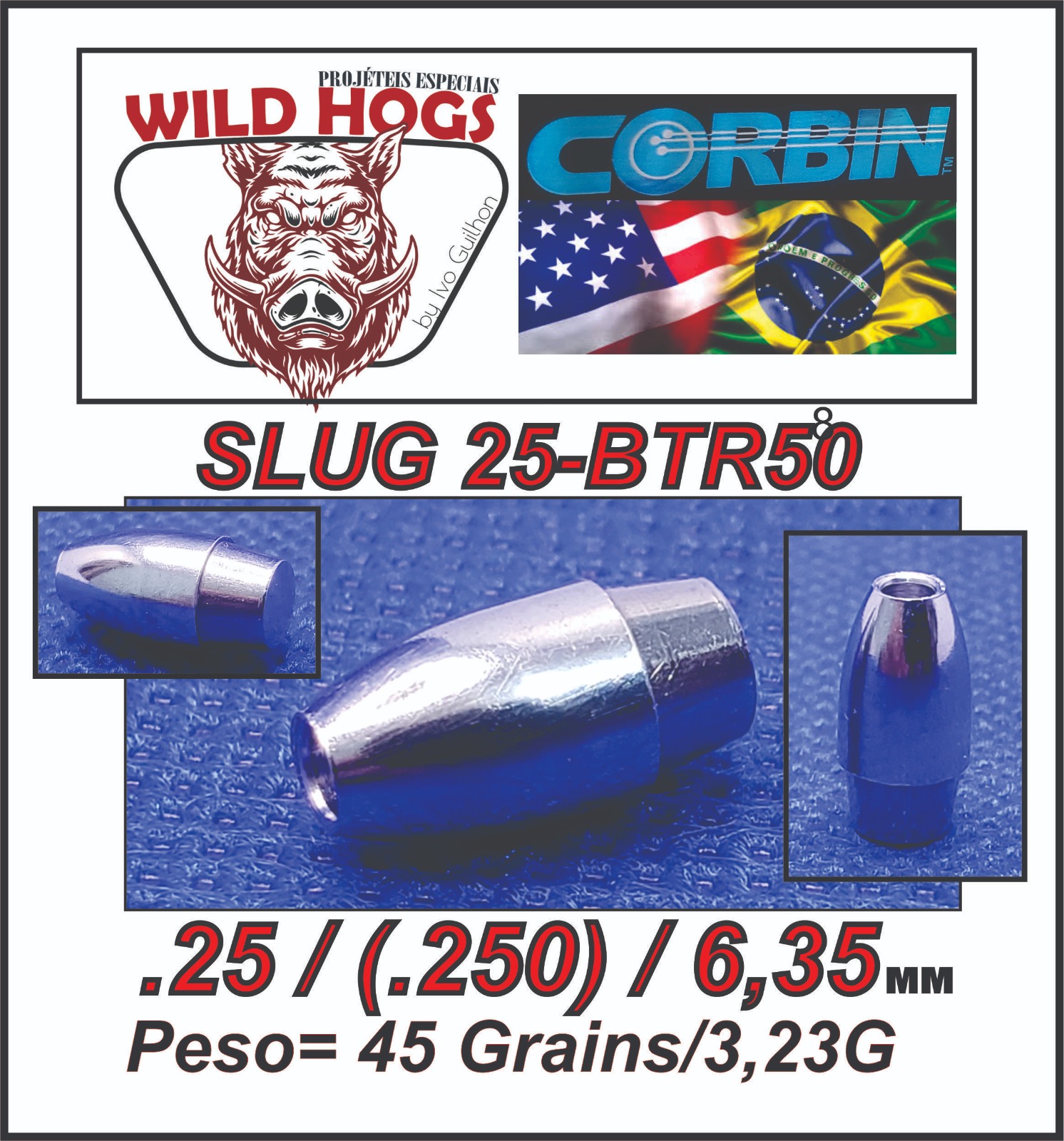 Chumbinho Slug BTR50 para Carabina PCP no calibre 6.35 mm (.25) fabricado em maquinário Corbin, entregando um chumbinho de altíssima qualidade com o mais moderno processo de produção disponível no mundo.
