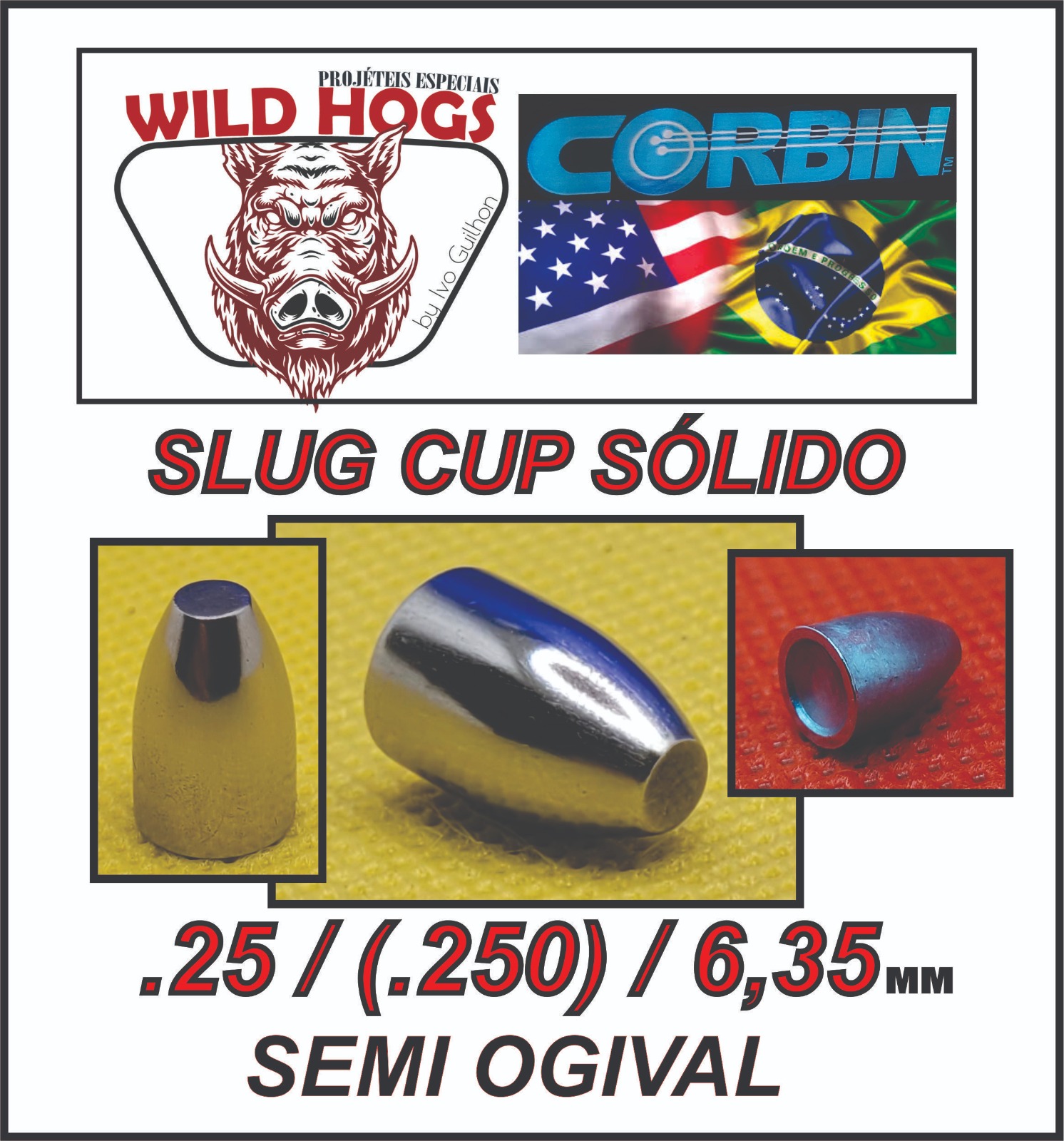 CHUMBINHO SLUG CUP SÓLIDO SEMI OGIVAL 6.35 MM (.25) WILD HOGS