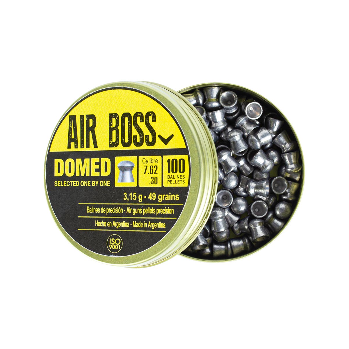 Chumbinho Air Boss Domed selecionado um a um. Para carabina 7.62. Lata com 100 unidades.