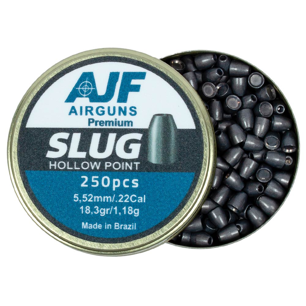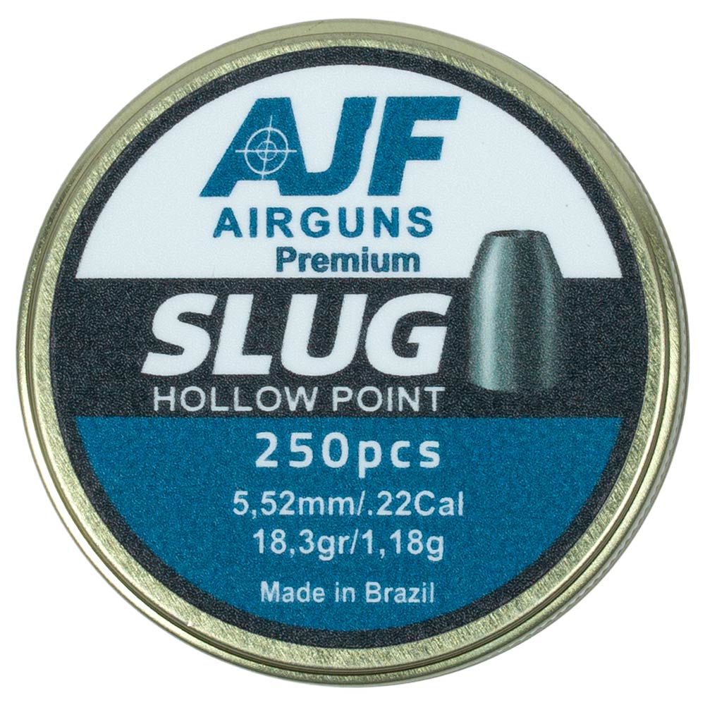 1x Lata de Chumbinho AJF Airguns Premium Slug 5.52mm 18.3gr com 250 unidades.
