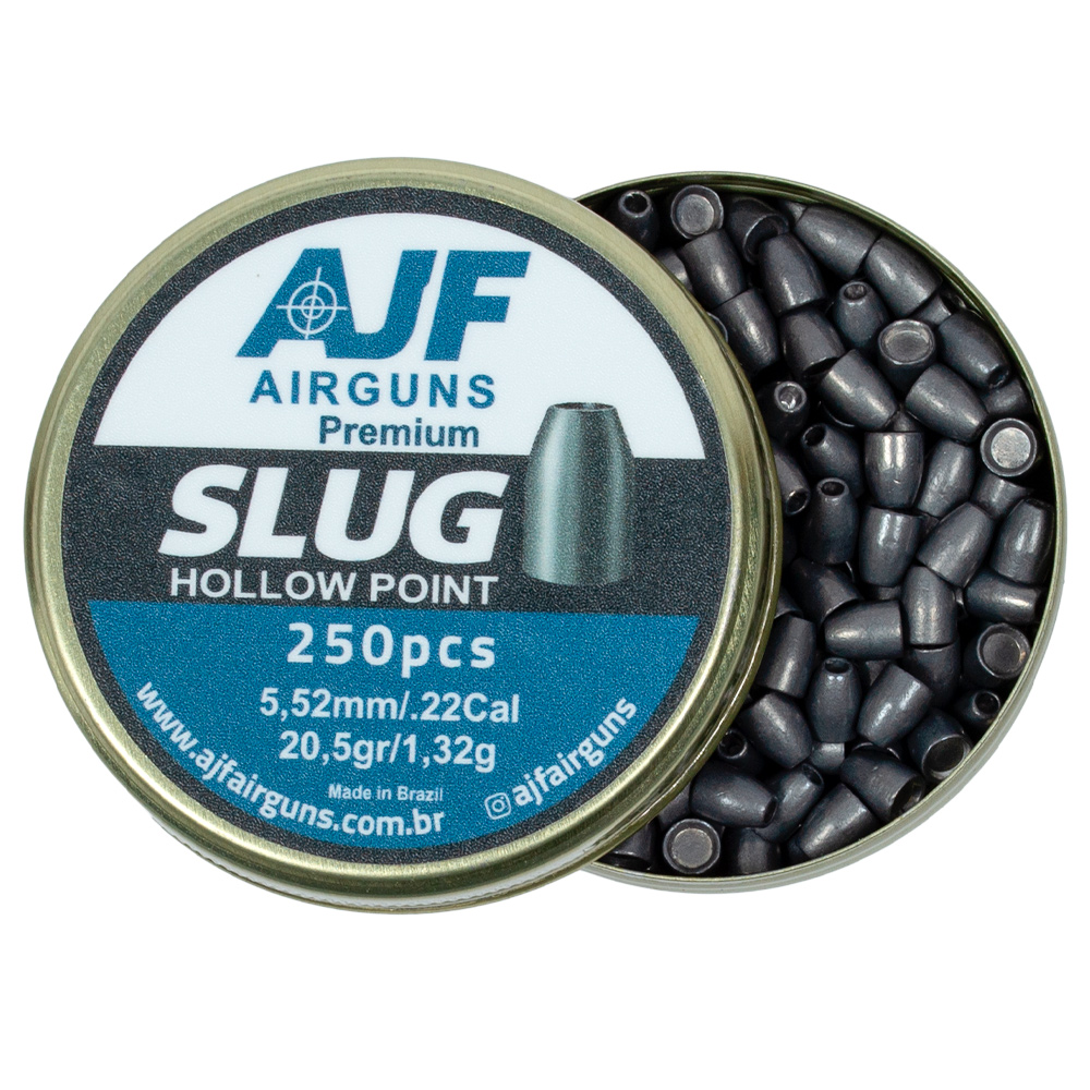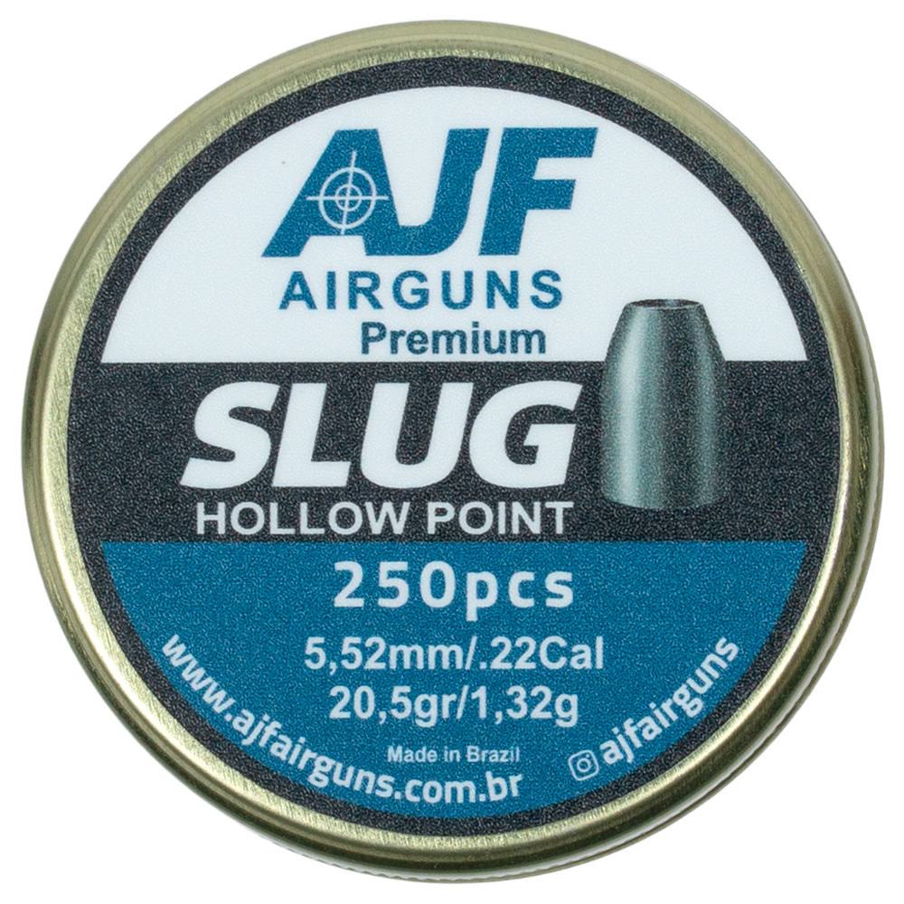 1x Lata de Chumbinho AJF Airguns Premium Slug 5.52mm 20.5gr com 250 unidades.