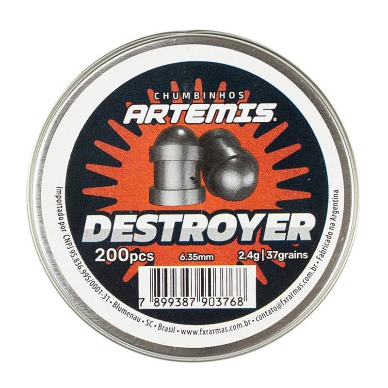 1x Lata com 200 chumbinhos Destroyer Artemis para Carabina de pressão 6.35 mm (.25)