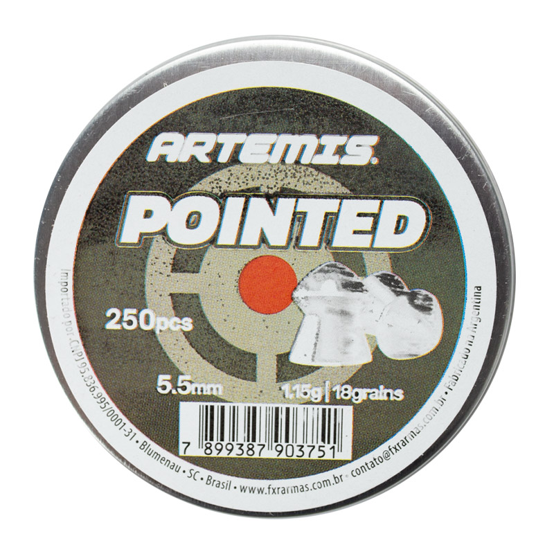 1x Lata com 250 chumbinhos Pointed Artemis para Carabina e pistola de pressão 5.5 mm