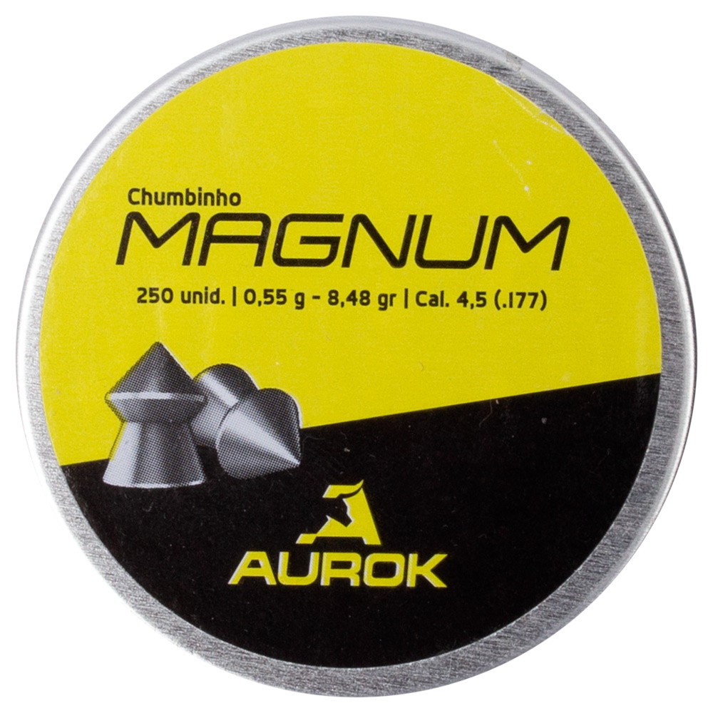 1x Lata com 250 chumbinhos para carabina e pistola 4.5 mm Aurok Magnum