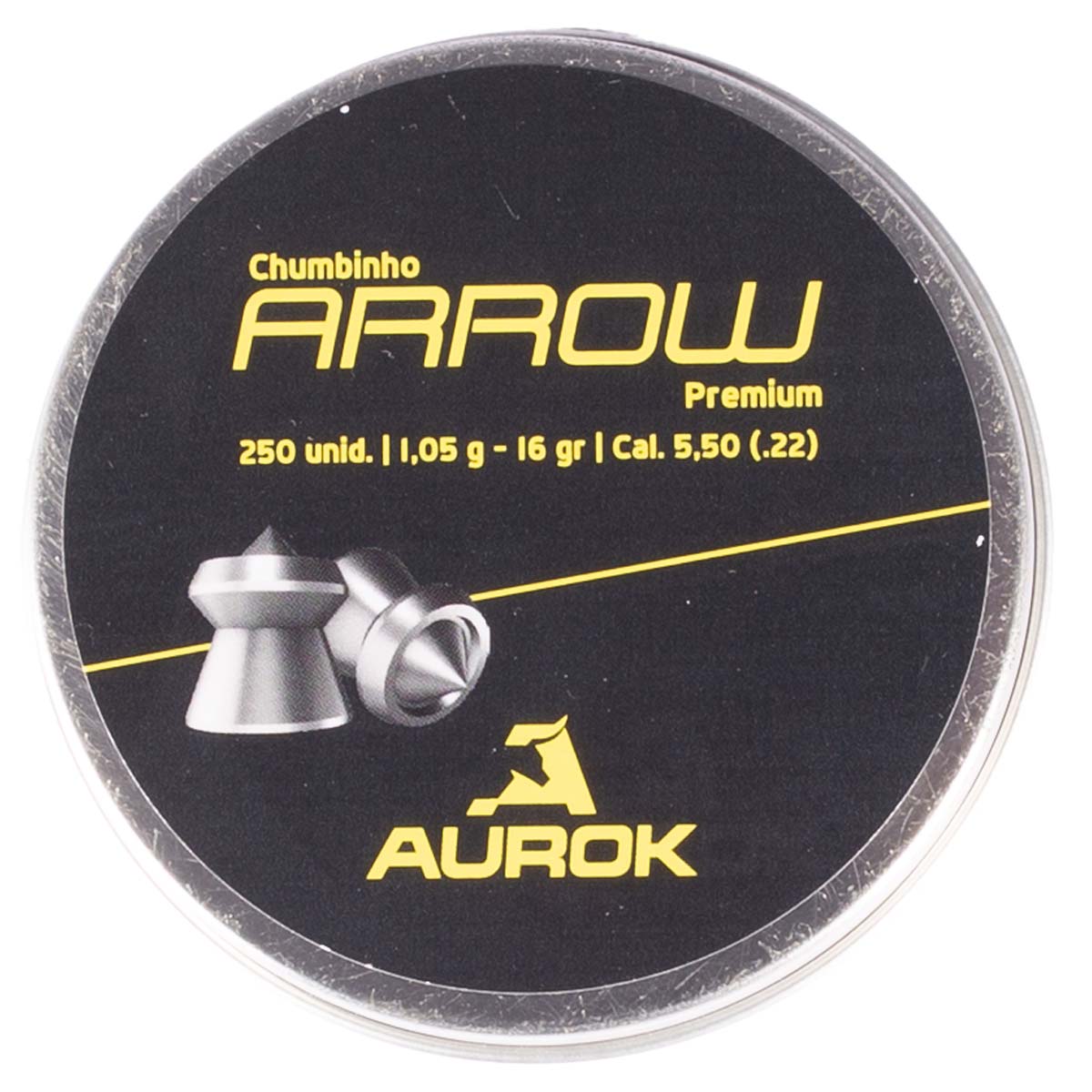1x Lata com 250 chumbinhos Aurok Premium Arrow para calibre 5.5 mm (.22)