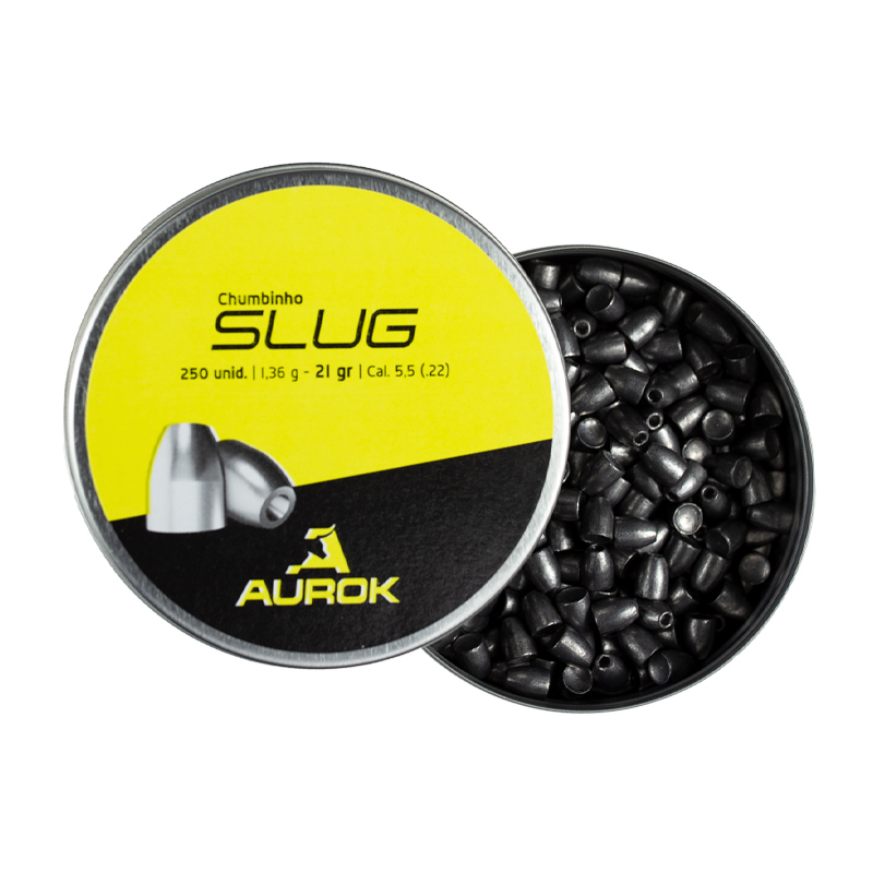 1x Lata com 250 chumbinhos Aurok Slug 21gr para Carabina de pressão PCP 5.5 mm