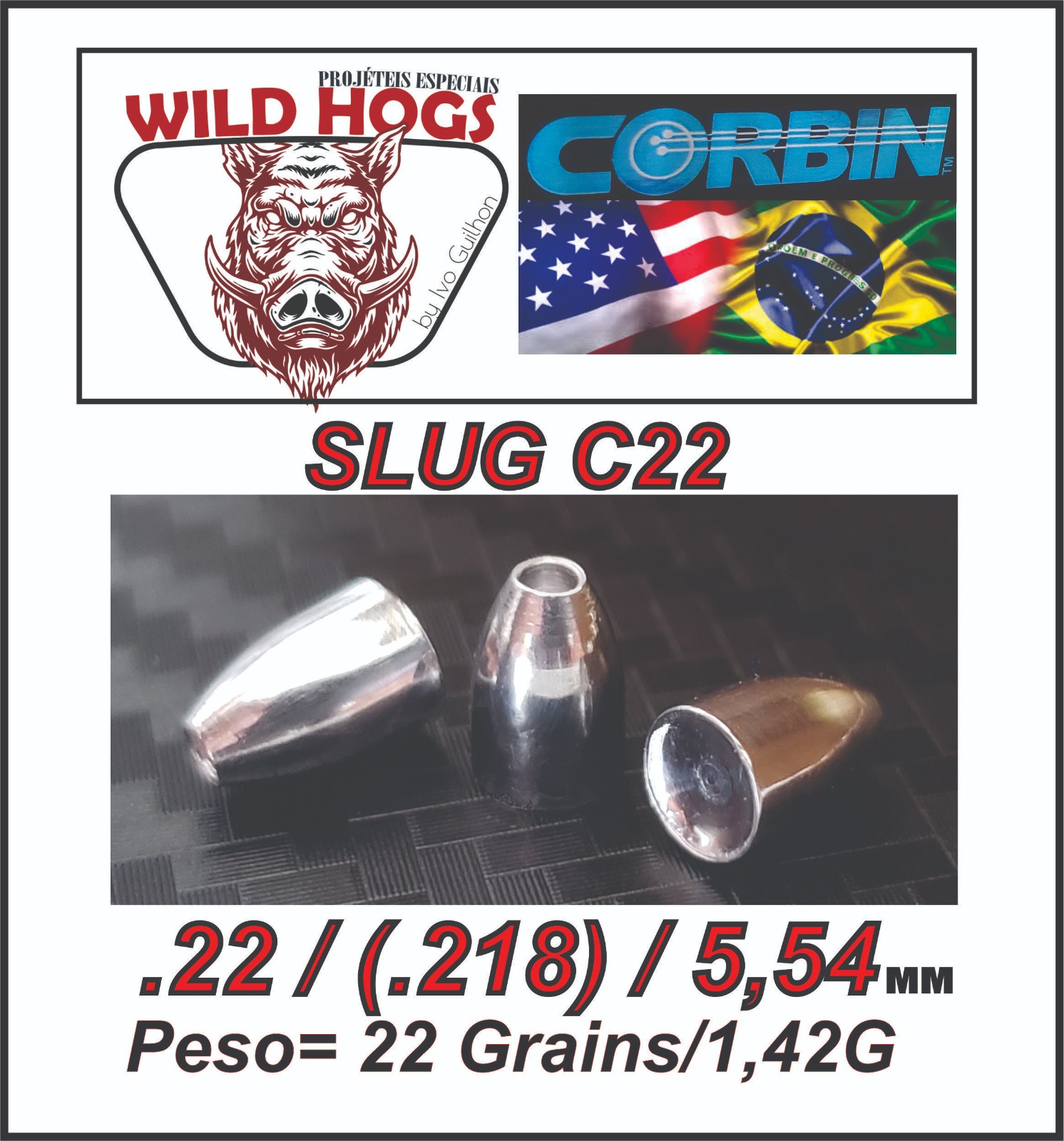 CHUMBINHO SLUG C22 WILD HOGS 22 GRAINS - 250 UN