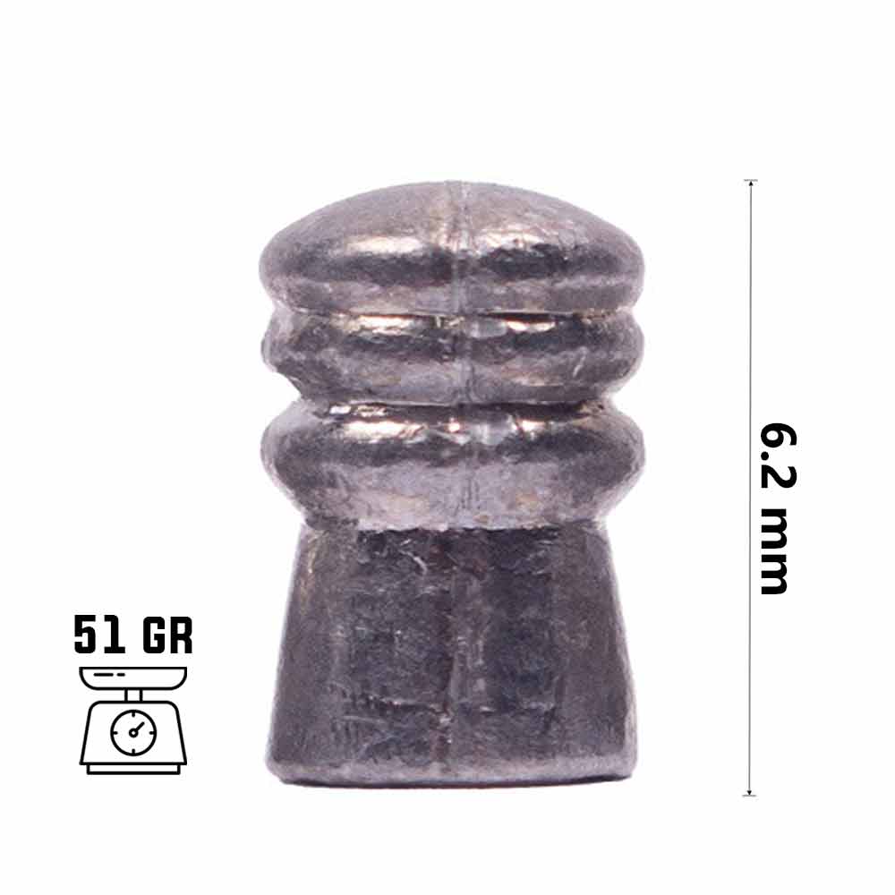 O Chumbinho Slug Cabeça Dupla 51 Grains 6.35mm (.25) foi desenvolvido para oferecer desempenho superior em tiros que exigem alto poder de impacto e penetração. Com peso acima da média e estrutura robusta, é ideal para carabinas PCP de alta pressão, garantindo precisão consistente, trajetória estável e excelente desempenho balístico em distâncias médias e longas.
