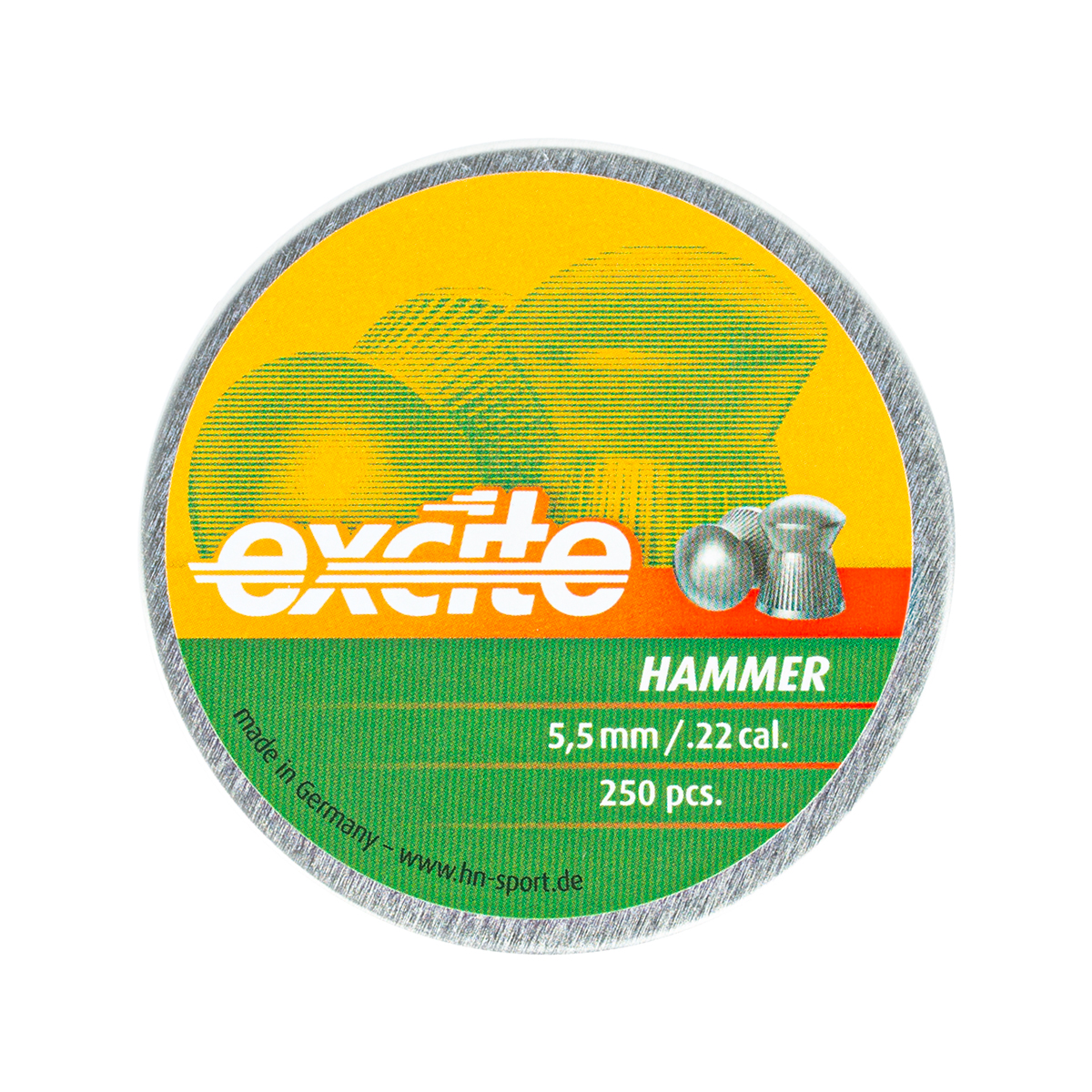 Chumbinho Excite com cabeça redonda Hammer no calibre 5.5 mm. Lata com 250 unidades.