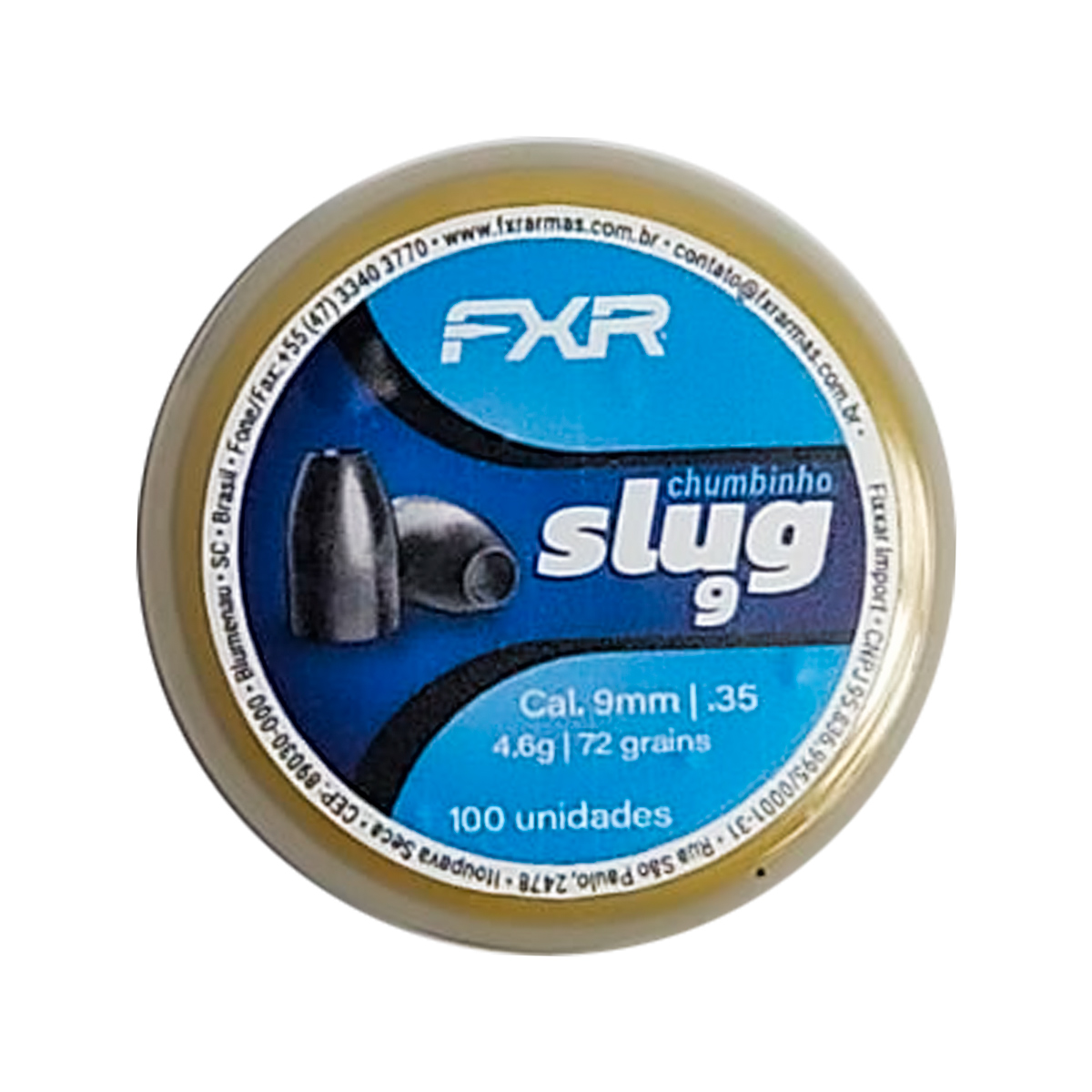 1x Pote com 100 chumbinhos FXR Slug para calibre 9mm