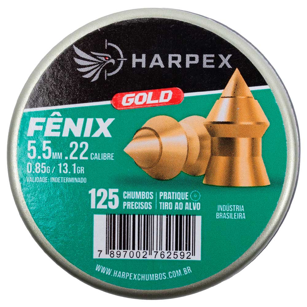 Chumbinho Harpex modelo Fênix Gold para carabinas no calibre 5.5 mm.