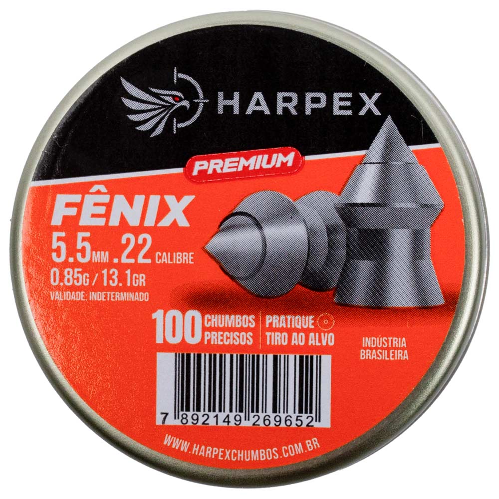 1x Lata com 100 chumbinhos Harpex Fênix Premium para carabina 5.5 mm