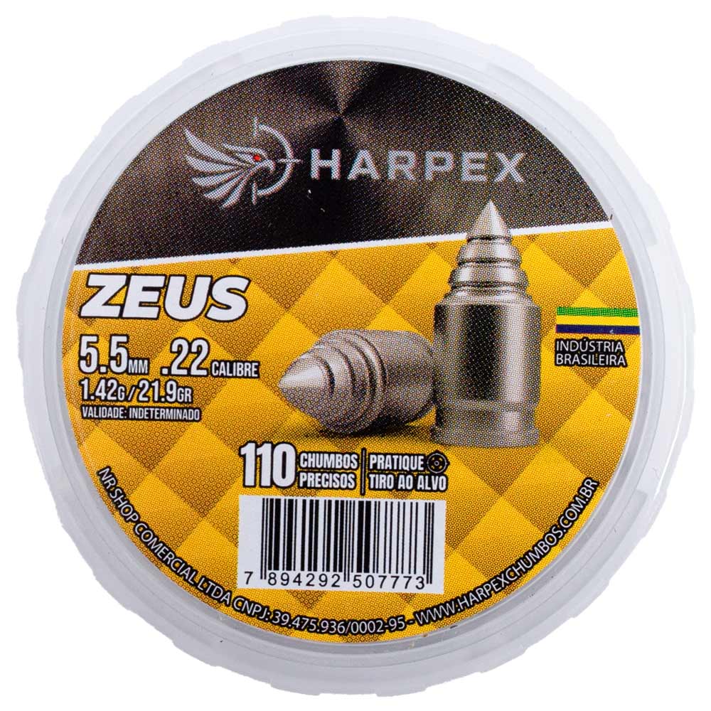 1x Lata com 110 chumbinhos Harpex Zeus 5.5 mm de alto desempenho