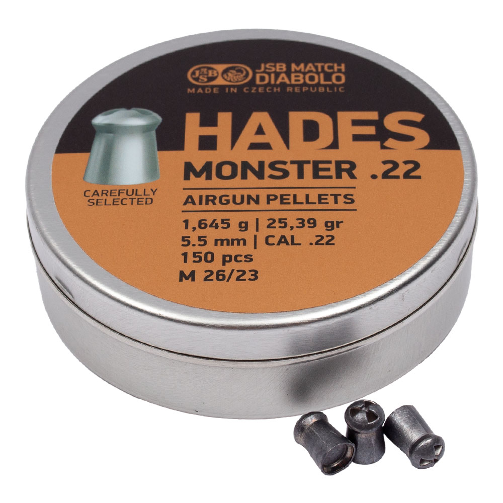 O chumbinho Hades Monster é uma munição pesada, indicada para uso em carabinas de pressão de alta potência no calibre 5.5 mm (.22). Oferece alto impacto e grande precisão nos disparos.