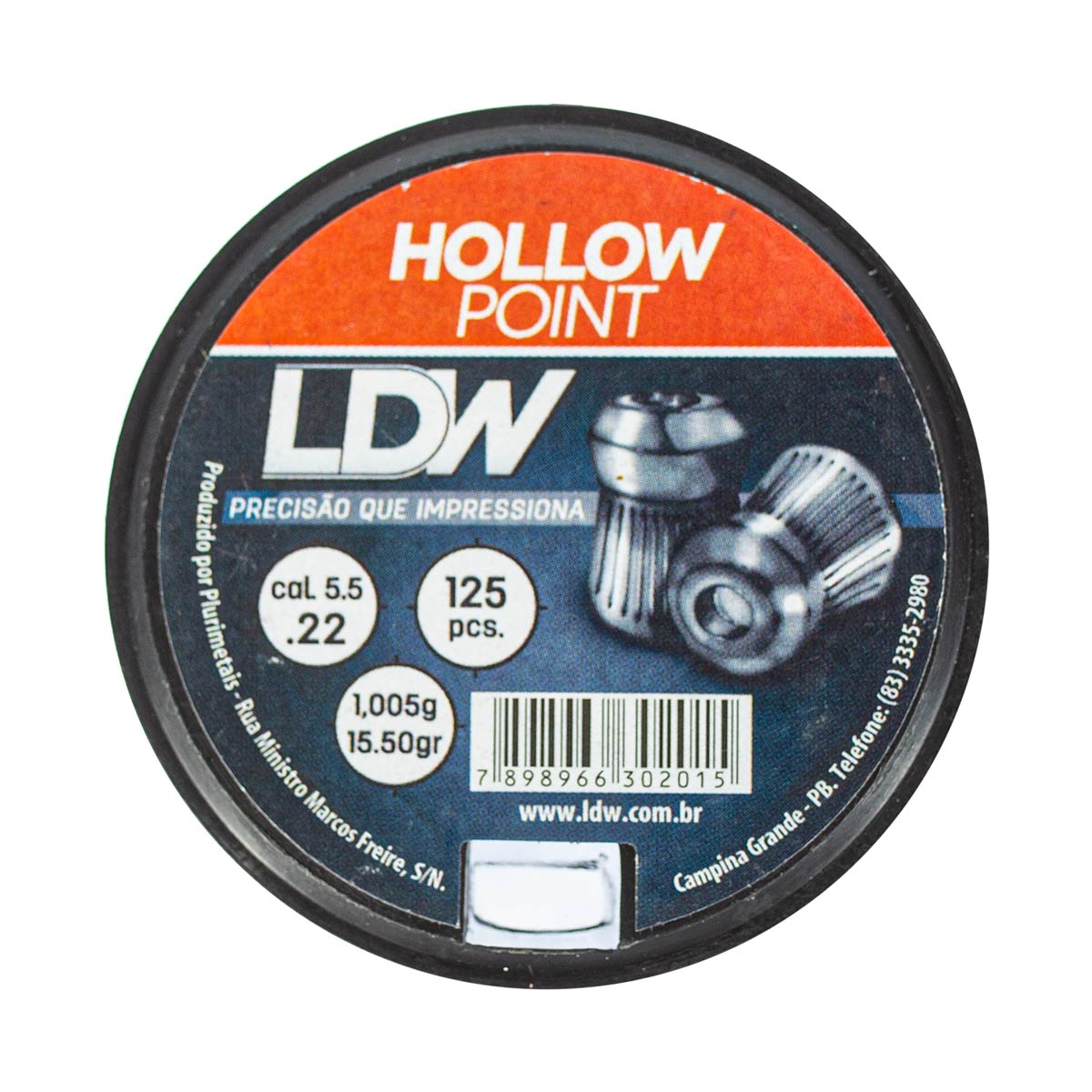 Chumbinho Hollow Point LDW 5.5 mm. Pote com 125 unidades.